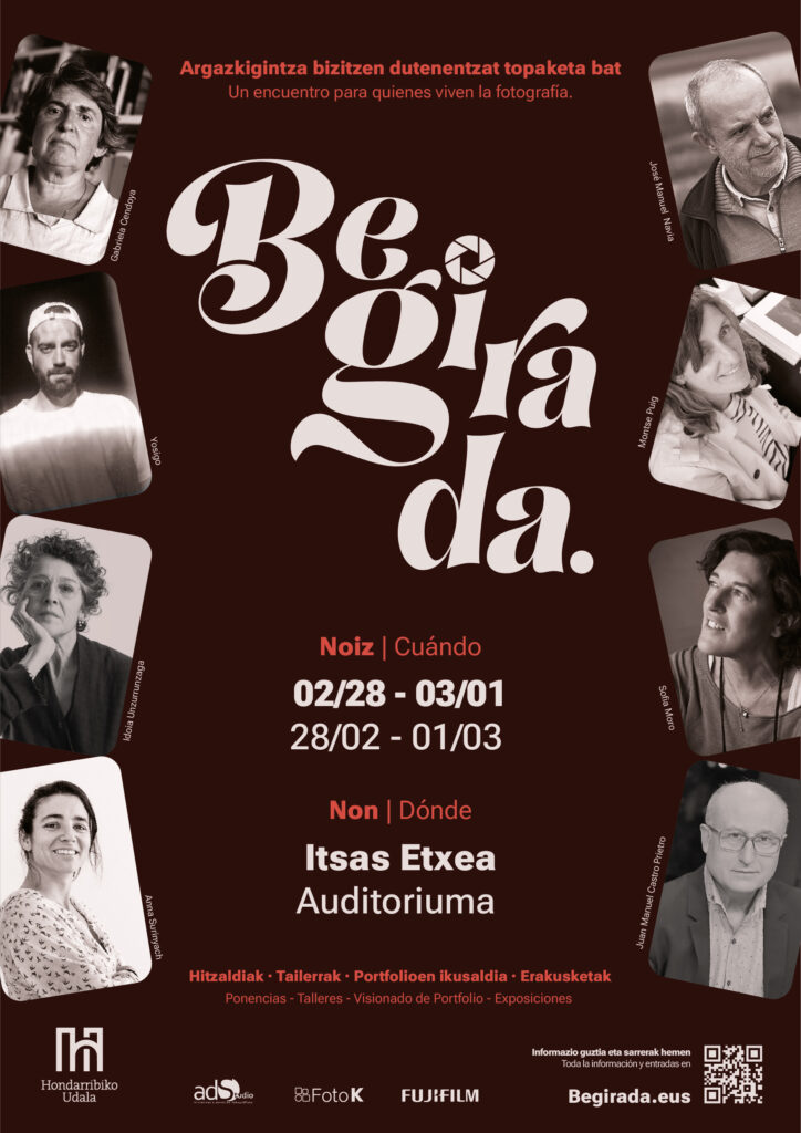 Los días 28 de febrero y 1 de marzo se celebra el nuevo congreso de fotografía «Begirada» en Hondarribia con un cartel de ponentes que incluye a Yosigo, Montse Puig, Idoia Unzurrunzaga, Sofía Moro, Anna Surinyach y Juan Manuel Castro Prieto.